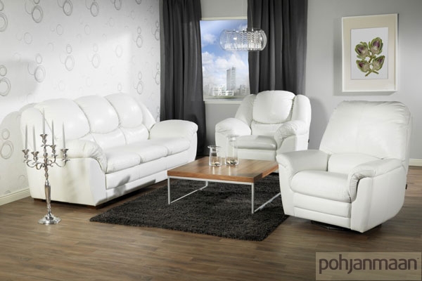 Модель «Obelix» финской фабрики «Pohjanmaan» Размеры: 3-местный диван — 228×105 х h104, 2-местный диван — 173×105 x h104, кресло — 118×105 x h104 см. Модель можно комплектовать механизмом для постоянного сна с пружинным ортопедическим матрасом или «гостевым» механизмом.Есть возможность составлять угловые композиции.Кресло-реклайнер «Obelix» (на фото) снабжено механизмом трансформации и имеет две позиции. Первая — это обычное кресло, которое может вращаться на 360° и качаться. При второй позиции поднята подножка, а спинка кресла принимает почти горизонтальное положение.Габариты кресла в сложенном виде: 99×97хh102 см. Габариты кресла в разложенном виде — 99×168 х h83 см.На заказ модель «Obelix» может быть выполнена в одном из более чем 50 вариантов кожи, а также в ткани, фактуру и цвет которой Вы можете подобрать в салоне.